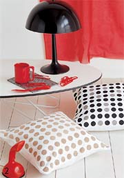 這個(gè)休閑的小角落讓人感到全身心放松,蘑菇造型的臺燈和圓點(diǎn)圖案的靠墊平和了跳躍的紅色,讓浮躁的心沉靜下來。
