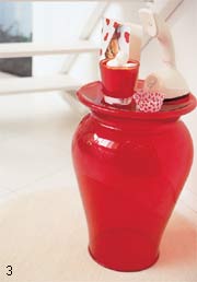 草莓是很多女孩子都喜歡吃的水果,因?yàn)樗?dú)特的口感。你能想象仿造草莓形狀和色彩制作的小家具是什么樣子嗎?用質(zhì)地上乘有透明感覺的丙乙烯材料做成的小凳子俏皮可愛,也可用它來當(dāng)小邊桌。另外,鮮艷嬌嫩的紅色也是讓人聯(lián)想起草莓的元素,把它融入到白色為主的居室中也起到了調(diào)和色彩、激活氛圍的作用。