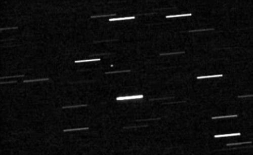 通過(guò)望遠(yuǎn)鏡拍攝的這顆小行星照片(其中的光點(diǎn))