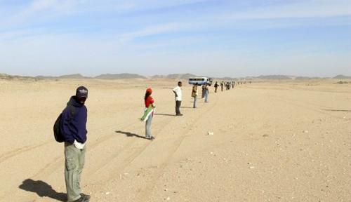 尋找行星墜落殘骸的志愿者排成一條直線進(jìn)行搜尋