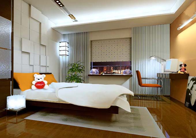 提醒:可愛型臥室,并不意味著是所有可愛的東西的堆砌,也要十分注意飾物顏色的搭配和多少的把握,不然會把自己的臥室變成一個花花世界,甚至玩具收容所了。