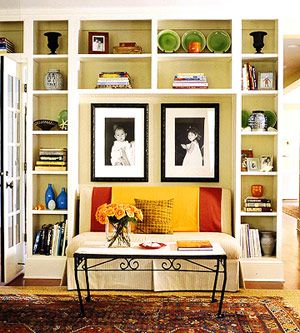 概要: 是不是覺得自己已經(jīng)把客廳中可收納的地方都用盡了。那不妨充分發(fā)掘你墻面的收納功能吧,一定會(huì)給你帶來很多的驚喜?!?。把整面墻利用起來 不要害怕把整面墻都用作為收納功能。利用柜子大小不一的尺寸巧妙進(jìn)行組合,并且可以在柜子的中央掛一副壁畫,作為視覺的重心。這樣呢,既可以讓整個(gè)收納墻顯得賞心悅目,又避免了凌亂感。 2。