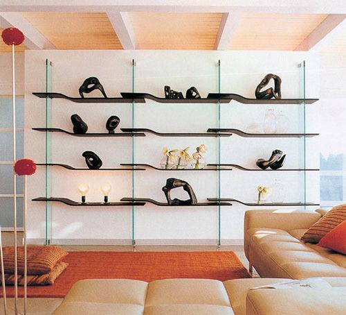 客廳擱架主要突出其展示功能,而擱架的本身設(shè)計(jì)要么前衛(wèi)時(shí)尚,要么和整體家居風(fēng)格一致,而擱架最好為開(kāi)放式,可以放置一些具有觀賞效果的小件物品,對(duì)整個(gè)客廳的裝飾起到提點(diǎn)作用。