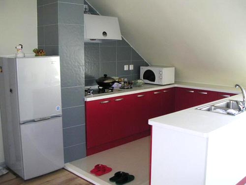 三、外觀華麗但不節(jié)能。水槽直接影響到自來(lái)水的使用量。雙水槽可以浸、洗分開(kāi),用水更加合理。此外煤氣灶的設(shè)置應(yīng)該盡量避開(kāi)風(fēng)口,如果安裝在門(mén)邊,使用時(shí)煤氣會(huì)受到流動(dòng)空氣的影響,無(wú)法集中吸收,會(huì)影響抽油煙機(jī)的工作。此外,櫥柜占地面積過(guò)大,除了浪費(fèi)水電之外,還會(huì)使廚房顯得非常擁擠。