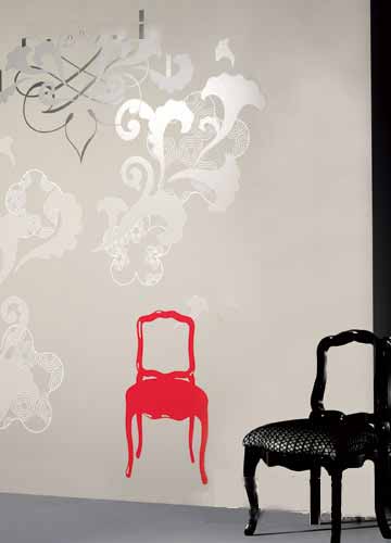 具象的椅子和抽象的花朵共同出現(xiàn),反映出混搭風(fēng)潮對壁紙?jiān)O(shè)計(jì)的影響。