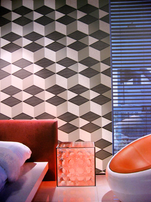 風(fēng)格制造:在整體氛圍的營造上,主要依靠素色背景和局部圖案的對比來體現(xiàn)。這類壁紙很多都采用電腦設(shè)計(jì),無論是局部使用還是大面積鋪貼效果都不錯(cuò)。一般對于朝陽的房間,可以選用中性偏冷的色調(diào)以緩和房間的灼熱感;而背陰的房間,則可以選擇暖色系的壁紙以增加房間的明朗感。要注意有些壁紙的底色是比較暗的,會(huì)吸收房間內(nèi)的光線,故采光較差的房間不宜過多使用。