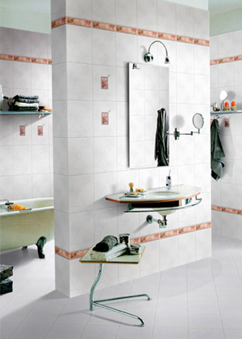 第四招、巧妙利用腰線、其他規(guī)格面磚拼花色、地面圈邊線、豎向裝飾線、衛(wèi)生間墻面鏡面等,豐富效果的同時(shí)避免或減少裁磚。