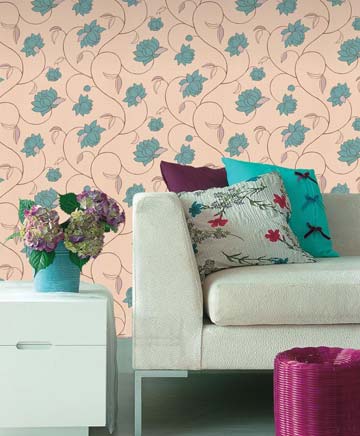 主體特征:大麗花、雛菊、罌粟、郁金香等輪廓柔美的花形開始升溫,立體花朵有所退潮,平面印染的方式使得大面積花朵更富新鮮的春夏氣息。因為色彩柔和,圖案唯美,這類壁紙適合使用在居室墻面的各個角落,顏色稍重的適合作背景墻,顏色稍淺的適合鋪滿整個墻面。絲絨纖維的壁紙材質(zhì),是表現(xiàn)大面積印花壁紙圖案的首選載體,不但后期更宜鋪貼,還具有環(huán)保耐損的特性。