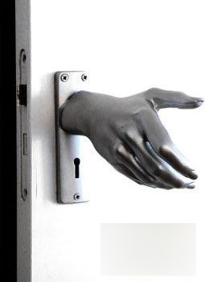 這款門把手就被創(chuàng)造性的做成了手的形狀,這樣,你每次都要通過“握手”的方式對門表達(dá)一下友好才可以將門打開。