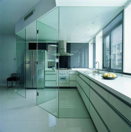 開放式廚房近年來受到不少人的青睞,但是中國(guó)人的烹飪方式容易使廚房里的油煙擴(kuò)散到其他空間。采用玻璃墻對(duì)開放式廚房和其他空間進(jìn)行分隔是解決這一問題的好方法。透明的玻璃墻很好地保證了開放式廚房的開闊感和透亮性,在視覺效果上不打折扣,而烹飪時(shí)的油煙擴(kuò)散問題也能因此得以解決。