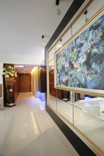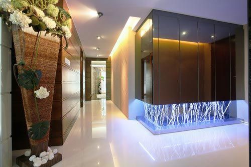 廊道美景:柜子下面的投射光源烘托出藝術美景。