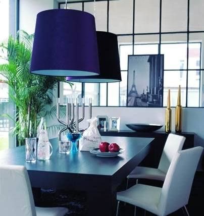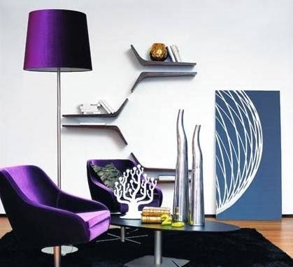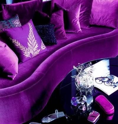閃爍著亮光的紫色和金色搭配,在黑色高光玻璃茶幾的調(diào)配下,顯示出新奢華的色彩精髓。