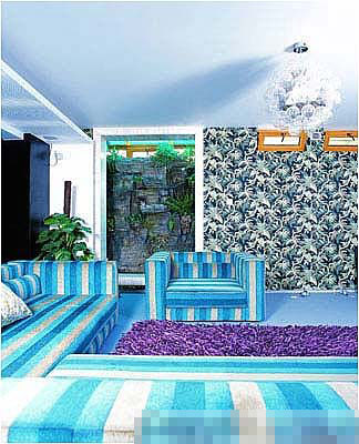 打開聽覺、視覺,一切感觀。自然的采光景觀和綠色墻紙?zhí)羝鹨晃莸那逖?。深灰藍地面、條紋沙發(fā)支起一墻攀滕。