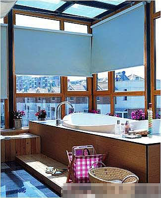 三樓的陽臺寬闊獨立,采光極好,設(shè)計師將浴缸搬上陽臺,頗具創(chuàng)意的陽光浴室溫情洋溢,處處顯露生活情趣。自控窗簾、近2米的大浴缸、實木地臺、寬闊的景觀視野……令沐浴舒適無比。