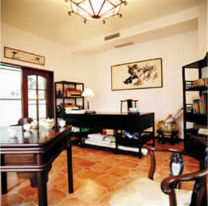 3.環(huán)境烘托:如果要想顯示出中式古家具在木質(zhì)紋路、雕刻花紋和顏色方面的獨(dú)特魅力,那么一定要注意燈光、地面和墻壁對古家具的烘托作用。柔和的燈光可凸顯出木材的天然質(zhì)感,淺色的墻壁可烘托出古家具的典雅韻味。