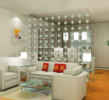 最簡單的做法,是用一個珠簾或者紗簾裝在沙發(fā)后面,這樣既能做到隔斷,又不會對通風(fēng)和采光造成影響。這種方法既簡單而且便宜,又極富時尚感。