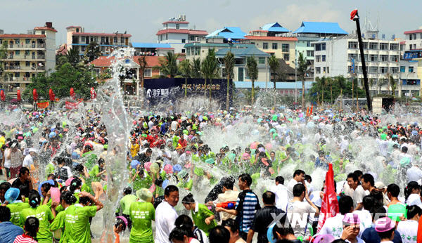 4月15日,在云南省景洪市潑水廣場上,萬人狂歡。