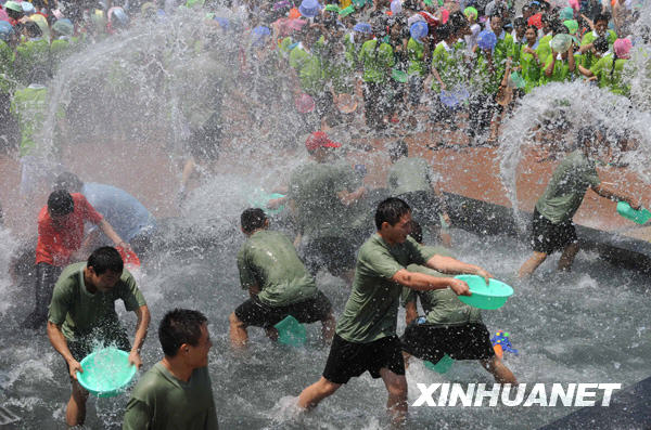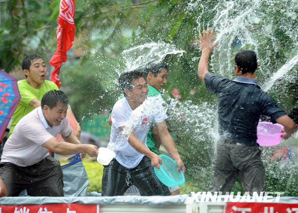 當日是云南西雙版納潑水節(jié)的最后一天,數(shù)以萬計的當?shù)厝罕姾屯獾赜慰痛┥瞎?jié)日盛裝,在云南省西雙版納傣族自治州景洪市互相潑水,互祝吉祥、幸福、健康。潑水節(jié)是傣族人民送舊迎新的傳統(tǒng)節(jié)日,有上千年歷史。新華社記者李曉果攝