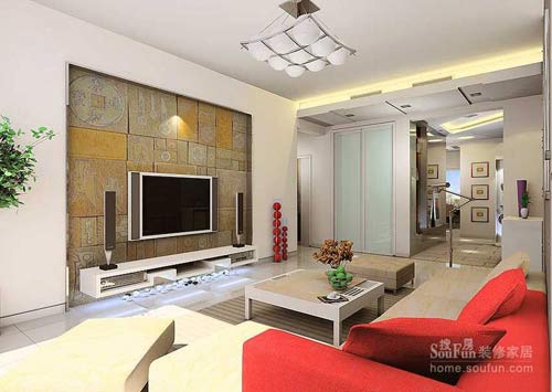 客廳設(shè)計(jì)上,給人的第一印象就是現(xiàn)代簡(jiǎn)約風(fēng)格,很簡(jiǎn)單干凈而又不失創(chuàng)意的設(shè)計(jì),加之中國(guó)紅的運(yùn)用,可謂無懈可擊。