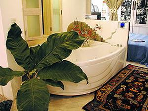 中式就一定是板起臉來的陰沉樣子嗎?當然不是,只要稍加改觀,就可以打破僵局。頁巖和小石子共同組成的沐浴區(qū),如果沒有這個特殊的浴盆會多么平淡!但是看到這個青花大瓷缸被用作浴盆,人在一片水氣氤氳中坐進去,總會讓人會心一笑。還有那只端端莊莊的洗手盆,旁邊是各種各樣、大小不同的海螺,可見主人的童心,當然這樣搭配也很好看。