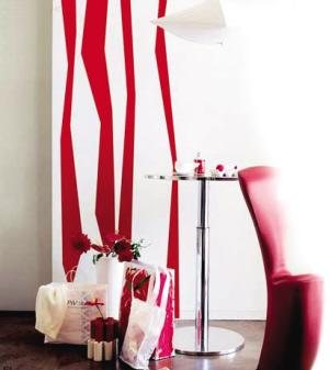 壁紙以一種特殊的紋路、花色及肌理變化,使墻面獲得良好的裝飾效果。除了常規(guī)的鋪貼方法,我們還可以用壁紙做局部裝飾。你可以選擇一些圖案或色彩強烈、肌理效果突出的壁紙來做一下嘗試,比如將壁紙與涂料交叉運用,或?qū)l紋壁紙斜鋪,或選取花卉壁紙中的圖案作為掛畫處理來裝飾墻面,都會取得意想不到的效果。這些手法會使空間更加活躍,俏皮可愛,也充分展現(xiàn)了壁紙的另類風(fēng)情。