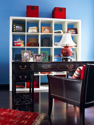 書房的色彩與其他房間不同,這里的藍(lán)色讓人感覺安靜、平穩(wěn)。
