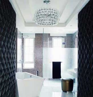 在這樣一個經(jīng)典空間里,就可以選擇設計風格一致,但形態(tài)、色彩、質感各異的家具。衛(wèi)生間干區(qū)的皮質軟墻、濕區(qū)馬賽克的拼貼,造型感十足的玻璃質吊燈以及線條明朗的潔具,它們都簡潔而富有張力,共同打造了一個質感豐富的空間。
