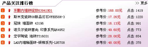 通過本周內(nèi)墻磚產(chǎn)品關注排行榜不難看出,具有文化性和藝術性的瓷磚已經(jīng)成為今春市場上最受歡迎的產(chǎn)品。東鵬的綻放系列、冠珠的藝術墻面磚、諾貝爾的塞尚·印象系列、L&D的銀柳系列,無一不是在藝術和文化上下足功夫。