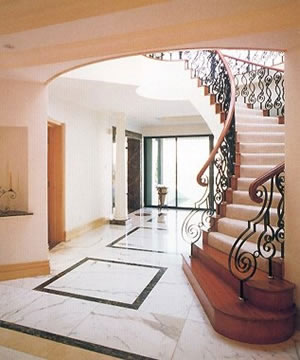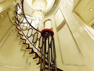 優(yōu)點:具有強烈的動態(tài)美,多在廳堂偏中部位旱地拔蔥。由于不靠墻,圍欄不能借助墻體,需加上透空欄桿,這就更好地表現(xiàn)了樓梯的藝術(shù)之魅。但這種樓梯由于每一段跨度較多,因此安全性較差。有老人和學(xué)齡前兒童的家庭,建議慎重使用。