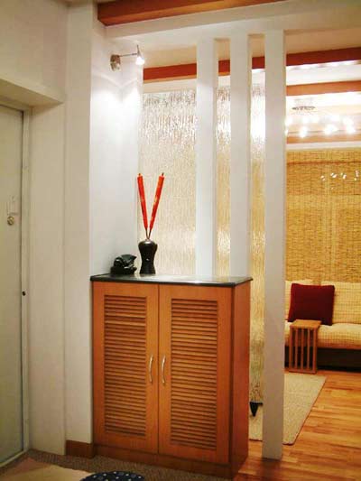 1、通透。玄關的間格應以通透為主,因此通透的磨砂玻璃較厚重的木板為佳,即使必須采用木板,也應該采用色調(diào)較明亮而非花哨的木板、色調(diào)太深便易有笨拙之感。