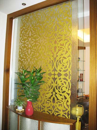 此外,還可以在門廳與客廳或衛(wèi)生間分界處,設(shè)計(jì)上一套屏風(fēng)或玻璃隔斷,,既保證了門廳的完整性,又減弱了空間的封閉感。