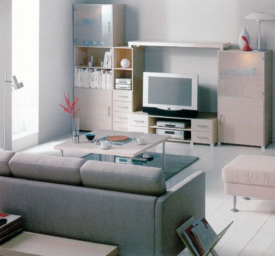 組合式客廳柜,多功能搭配:沙發(fā)、茶幾以及家具呈L形擺放的客廳,不同形式的柜體組合,在這里可以雅致地存放一切。從井井有條地擺放書本、CD和DVD,到收藏餐碟、展示寬屏電視,功能極其強大。