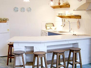 此外,吧臺或上下吊柜也都具有收納功能,一般吧臺可兼做早餐臺,高度以85公分最佳,用一般座椅即可,此吧臺還可當(dāng)工作臺使用;超過100公分的吧臺,就需要使用高腳凳,不過,收納功能相對較強(qiáng);吊柜也可做成有門片的雙面式或?qū)影迨剑墒占{雜物,層板可放餐杯或咖啡杯、酒杯等裝飾性的餐具。