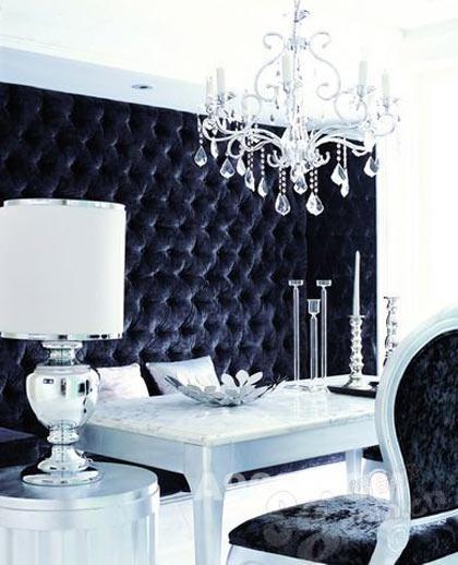 性格的錯(cuò)綜復(fù)雜體現(xiàn)在家居設(shè)計(jì)中,恐怕就是這種看似混淆的空間配搭了。表面上看,房間中的新古典主義布置只是在復(fù)古的輪廓中加入了現(xiàn)代工藝,而實(shí)際上,它是將現(xiàn)代家居的實(shí)用主義注入了古典藝術(shù)的精神關(guān)懷。除了客廳的會(huì)客區(qū)域完全采用柔軟的線條和質(zhì)感外,幾乎所有的房間都以古典造型的金屬線條勾勒。餐廳的大理石餐桌以前衛(wèi)的不銹鋼作為托架,桌面上的燭臺(tái)、果盤均脫胎于古典的原型,但金屬材質(zhì)和抽象輪廓又使其帶有ART DECO的魅惑力。吧臺(tái)與餐廳的座椅在鋼架結(jié)構(gòu)中使用包絨處理,如果覺得包絨座椅還不夠挑逗視覺,那么包絨墻面的設(shè)計(jì)可以說是超級(jí)顛覆,讓傳統(tǒng)雍容的材質(zhì)散發(fā)出現(xiàn)代脫俗的光芒。