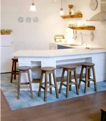 此外,吧臺(tái)或上下吊柜也都具有收納功能,一般吧臺(tái)可兼做早餐臺(tái),高度以85公分最佳,用一般座椅即可,此吧臺(tái)還可當(dāng)工作臺(tái)使用;超過100公分的吧臺(tái),就需要使用高腳凳,不過,收納功能相對較強(qiáng);吊柜也可做成有門片的雙面式或?qū)影迨?,可收納雜物,層板可放餐杯或咖啡杯、酒杯等裝飾性的餐具。