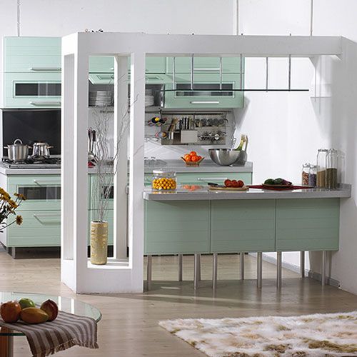 缺點(diǎn):視覺較“硬”,給人冷冰冰的感覺,且不易變化;在櫥柜臺面的各轉(zhuǎn)角部位和各接合部缺乏合理有效的處理手段。