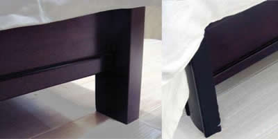 實木床多半看上去都非常的笨重,而這款床的床尾看上去卻十分簡潔。床腳處都使用簡單的線條,并且與地面留有20厘米的距離,既方便清潔床底,人站在床邊也不會頂?shù)侥_。