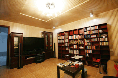 客廳,一排書柜增加了居室的書生氣息,古典家具,以簡約的手法演繹了一場古典美