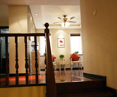 樓梯間的花瓣造型寓意'花開富貴',當(dāng)夜幕降臨,打開溫暖的柔和的燈光,無不透露著一種和諧,溫馨和吉祥!在外奔波一天的疲憊頓時全無,這就是一種家的感覺!