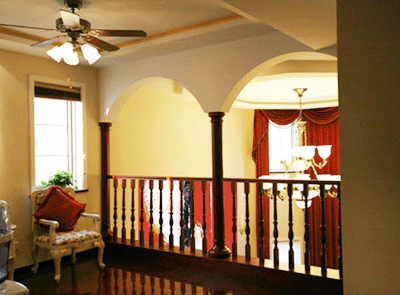 從這里看過去,拱形的裝飾,田園風(fēng)格的坐椅