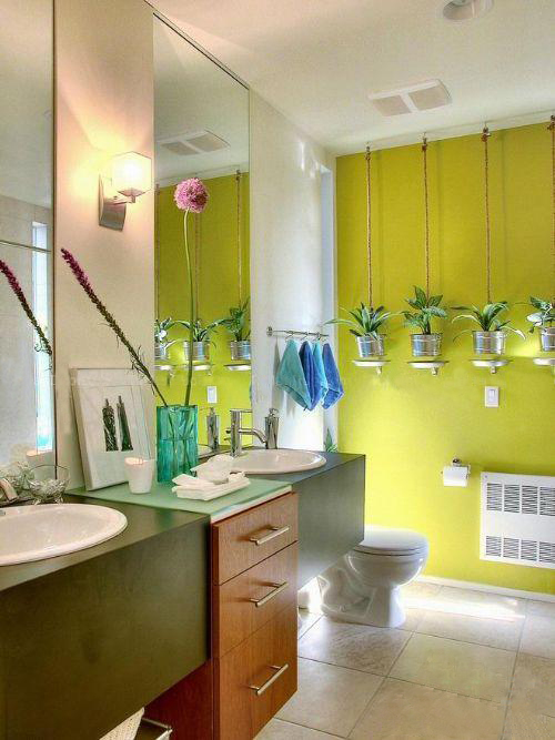 色彩的搭配:衛(wèi)生間的色調(diào)要柔和飽滿,一天的心情從洗漱開(kāi)始,案例中黃綠搭配的效果,還有墻壁上的透明花盆裝飾的綠色植物,讓衛(wèi)生間也有生機(jī)。