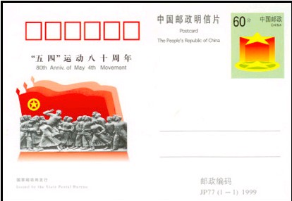 JP77”《五四運(yùn)動八十周年》紀(jì)念郵資明信片