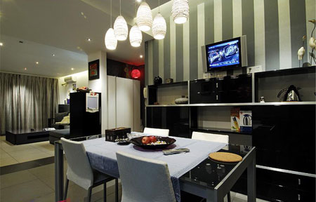 餐廳壁櫥設(shè)計(jì),在這里也可以邊就餐邊看電視。