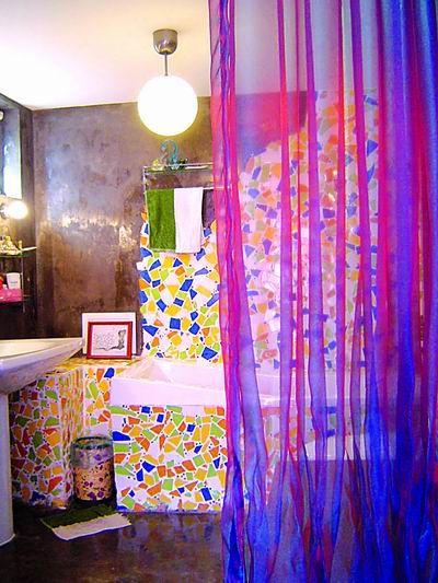 瓷磚拼貼方法的變化多端使浴室也呈現(xiàn)多樣的變幻,色彩的配合運(yùn)用、形狀的多樣搭配、裝飾線(xiàn)條的精心設(shè)計(jì)都賦予浴室全新的感覺(jué)。
