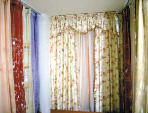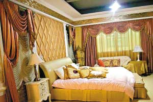 布藝賣場專設(shè)體驗式展廳,這是為歐式配置的窗簾