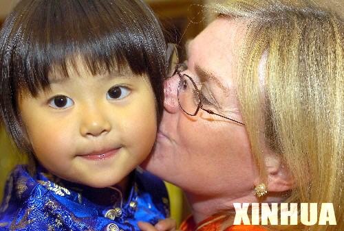 資料圖片:2006年3月11日,一名洛杉磯居民帶著她收養(yǎng)的中國女兒參加在中國駐洛杉磯總領館舉行的聚會