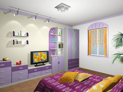 在床頭的一邊或兩邊,距墻約二十到四十公分的位置,豎一塊高大的板材,內藏床頭燈,造成一個虛幻的空間,使床頭部分更加富有擴張、神秘的魅力。