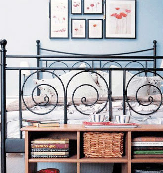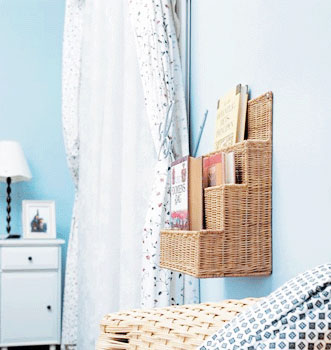 床頭兩邊的墻上,可以各放置一個儲物盒,當然要小型的,可以是藤質的或者布藝的,可以放置報刊書籍,也可以放置眼鏡、筆等小件物品,這樣一個小型的休閑閱讀空間就出現(xiàn)了。