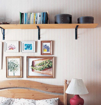 墻壁的上方可以用擱板,放置一些精美的擺設或者小型的花卉盆景等,下面可以掛照片或者裝飾畫等,讓墻壁不再單調,而變成一處風景。