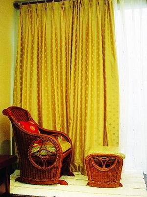 老年人的居室窗簾可選用提花布、織錦布等,厚重、素雅的質(zhì)地和圖案,以及華麗的編織手法,也能體現(xiàn)出老人成熟、穩(wěn)重的智者風(fēng)范。此外,厚重的窗簾帶來穩(wěn)定的睡眠環(huán)境,對(duì)于老人的身體大有好處。深淺搭配的色澤十分適用于老人的居室。如深胡桃木色的家具可用于床、櫥柜與茶幾等單件家具上,而寢具、裝飾布及墻壁等的色澤則以淺色調(diào)為宜,這樣,單個(gè)居室看起來既和諧雅致,又透露著長(zhǎng)者成熟的氣質(zhì)。